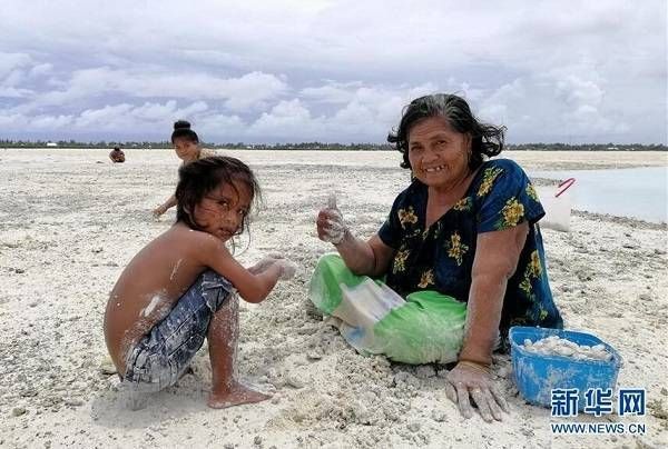 基里巴斯当地人在海边挖海螺 图片来源:新华网