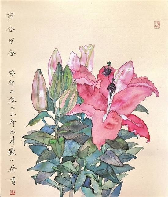 原标题:百合花开 (国画)