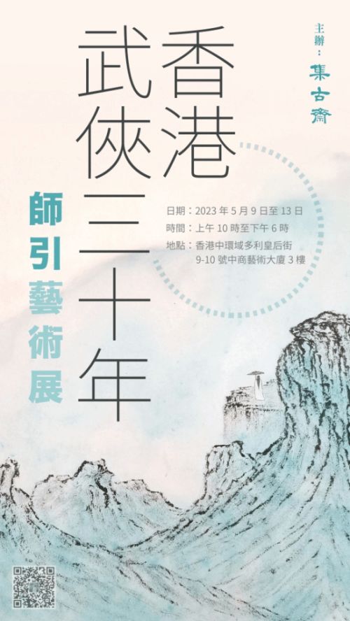 香港集古斋2023年5月9日—13日隆重举办《香港武侠三十年•师引艺术展》,以此致敬热爱的武侠江湖。画展期间,美术家协会,亚太卫视,港娱及文艺名流等出席参观。