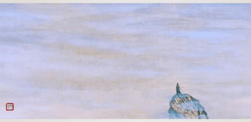 香港集古斋评论,师引先生作品风格清雅散淡,灵感多来源于武侠江湖。其作品常常呈现出一人、一舟、一琴、一剑的场景,或浮游于江海,或独坐于山巅,一派「天地苍茫,吾独游其中」的淡雅意境。