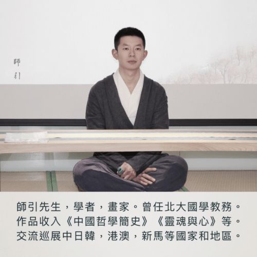 师引先生自幼喜欢绘画及国学,早年于北京大学从事国学教务工作,奠定了他的绘画基调以哲学爲主,形成了独特的个人画风。清雅极简的画面引人深思,无不透露出对宇宙人生的思考。
