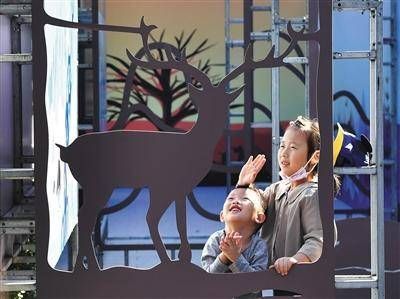 场景:小观众在参观麋鹿知识展览。新京报记者 李木易 摄