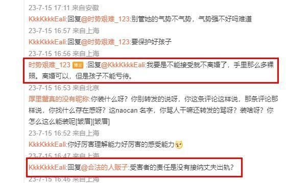 在评论区赵蕾回复网友的评论可以看出,赵蕾手中有大量的裸照,她还表示“离婚可以,但是孩子不能亏待”。
