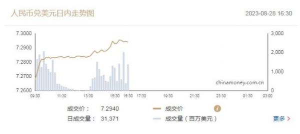 截至8月28日19时,境内在岸市场人民币兑美元汇率徘徊在7.2930,境外离岸市场人民币兑美元汇率则触及7.3021。