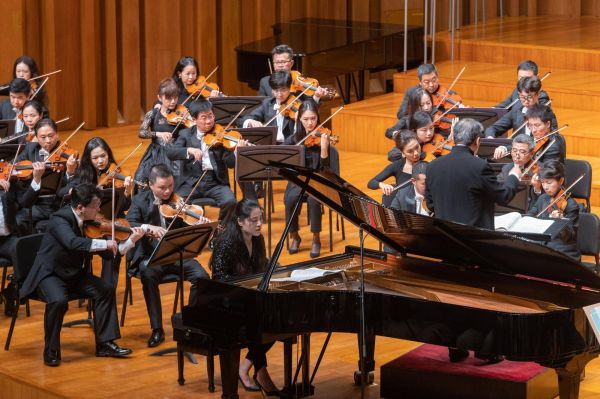 左章与余隆执棒的中国爱乐乐团合作演绎拉赫玛尼诺夫《第三钢琴协奏曲》。(摄影 牛小北)