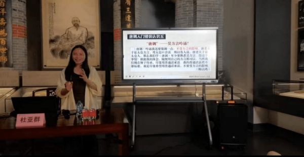 沉浸式的讲演,声情并茂的演绎,让前来参加活动的师生身临其境,感受唐调读文的浩然气象。讲解演示中,杜亚群还纠正了当前唐调传承中几种常见的错误认识,如把唐调人为划分派系,用唐调吟诵近体诗,用后世散文调读儒家经文,认为唐调必须用方言吟诵等,使听者对唐调有明晰的了解,不为乱象所迷惑。