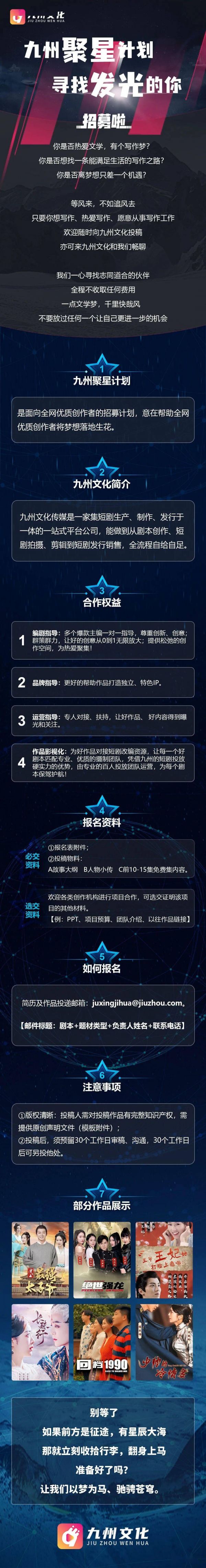 原标题:九州【聚星计划】,优质创作者招募开始啦~