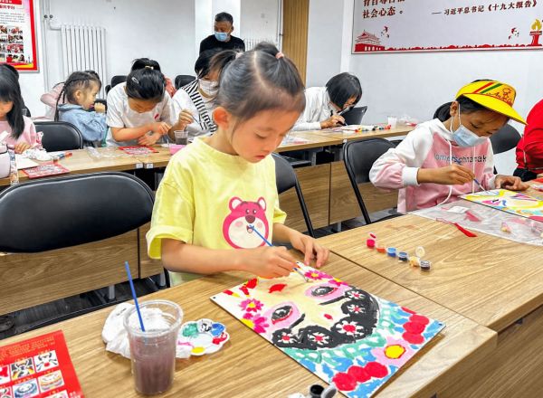 10月10日,石景山区苹果园街道西黄新村东里社区开展了未成年人画脸谱赏国粹活动。