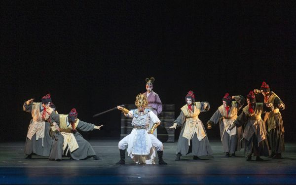 12月2日,演员在希腊雅典圣诞剧场表演戏剧《兰陵王》。 新华社发(马里奥斯·罗洛斯摄)