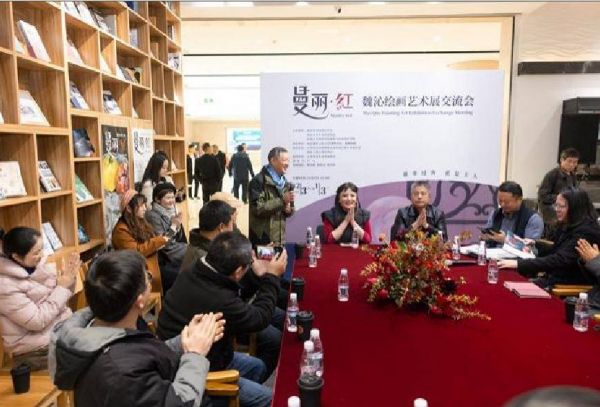 开幕式结束后,在展览现场举行了魏沁绘画艺术展交流会。在场的嘉宾对魏沁的艺术成长和发展方面,从工作和生活的各个角度深入交谈,并对她艺术的未来可能性寄予了期望。