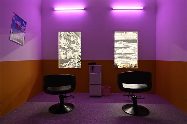 当艺术打破媒介与现实边界,带来一片崭新面貌。《无央公园》是一处向公众敞开的“游散地”,超越传统的观展模式,创造一幕幕奇特景观。其中艺术团体阳江组合、艺术家刘韡、艺术家石青及五条人乐队为空间量身创作的四组园景,通过各自的装置打造一个多维灵感空间,消融现实的边界,让观众沉浸式体验这片集合艺术作品、声音和自然的场域,探索多元艺术之乐。五条人乐队呈现的《梦幻丽莎发廊》特展复刻了乐迷心爱的同名专辑,置身于城中村发廊灯光下、墙面上的乐队巡演海报、标志性的红色垃圾袋、老式电视机循环播放的乐队MV,在这个模糊艺术与生活界限的场地,带观众回到旧日,处处值得留恋。由阳江组合带来的作品以绿植、石头与书法构造了自然与话语生态的叠合。艺术家刘韡的作品《看见的就是我的》将宝丽来相机拍摄的风景原封不动的搬进园区。石青的作品《藏在地图里的乌托邦时间》则构成了《无央公园》的最后一处景观,观众自由游走这座由迷你造型所制造的空间中。