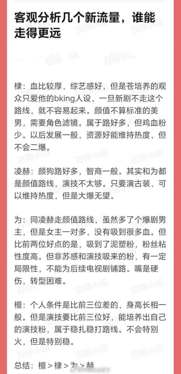 有网友分析了下几位男流量的发展前景,大家感觉客观吗?