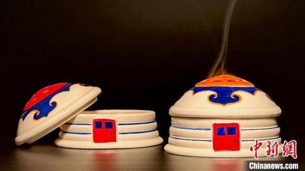 他最新的创作是一款底座是祥云的纯白色蒙古包香炉,广告词也很美:暖香萦绕,北国之冬。