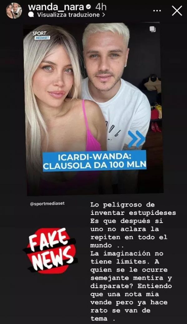 不过对于意大利媒体的报道,旺达在社媒称这是虚假消息。