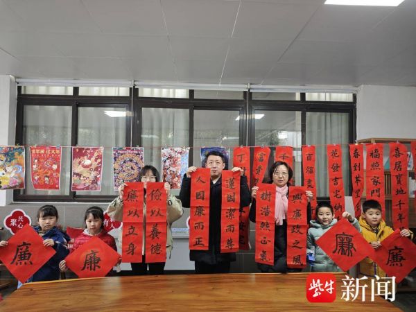 棋杆社区区域内包含幼小初三类院校,近年来,依托暨阳清风文化馆的廉政教育功能,“廉文化”“家文化”逐渐在青少年的心中落地生根。这一天,孩子们兴高采烈地参加了新年春联的展览活动,他们说:“我要把祝福送给小区的党员叔叔阿姨们,希望他们能够一直奋斗。”