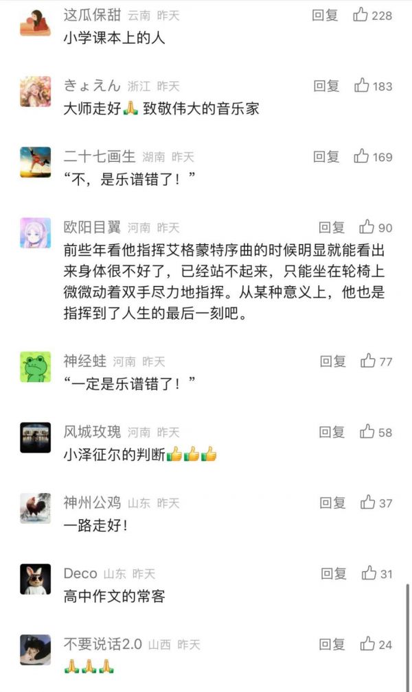 据澎湃新闻,小泽征尔最后一次在中国亮相,是2009年4月。那一年,他以音乐总监的身份,亲自带领“小泽征尔音乐塾”造访上海大剧院,沪上观众因此得见亚洲青年音乐家的最高水平。