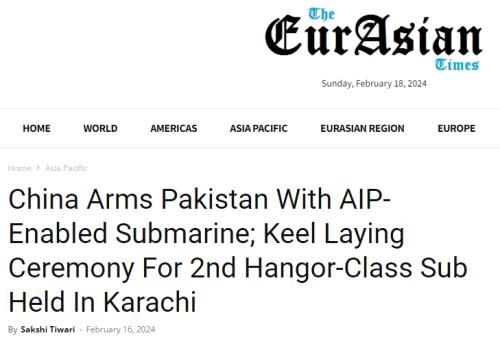 长期以来,印度将印度洋视为“印度的大洋”,而难以追踪行踪的水下潜艇是印度海军的头等大敌。印度《欧亚时报》16日称,“中国一直在用尖端军事装备武装巴基斯坦”,最新的动向就是第二艘在巴基斯坦本土建造的“汉格尔”级AIP潜艇开始铺设龙骨。印度媒体抱怨说,这一切都是“给印度制造大麻烦”。