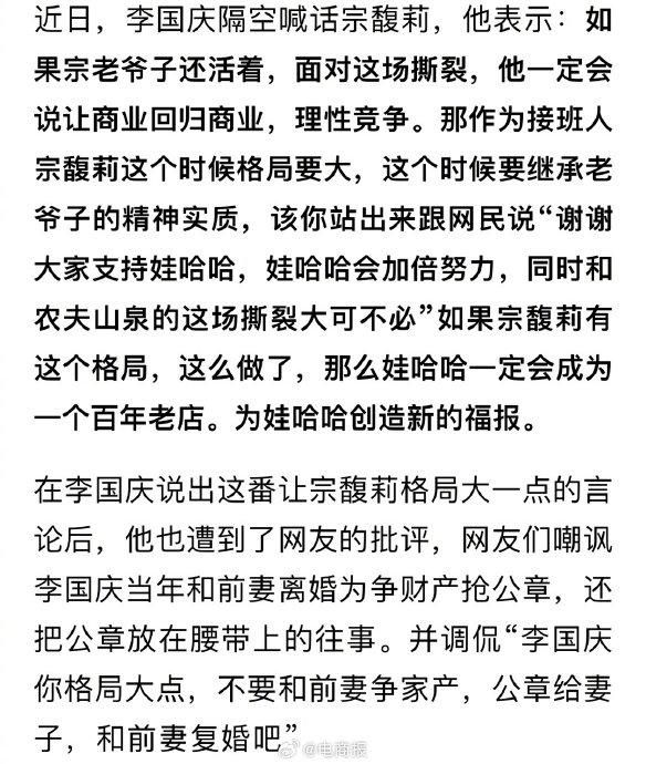李国庆谈娃哈哈与农夫山泉,喊话宗馥莉:格局大点……