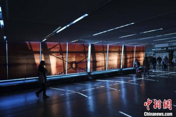中新网柏林4月18日电 米兰消息:当地时间17日,意大利当代艺术家贾卢卡·契高拉尼(Gianluca Cingolani)在意大利最大的机场之一——米兰马尔彭萨国际机场一号航站楼的标志性空间——“米兰之门”推出了名为“GRAPHIAE”(拉丁语“图形”之意)的展览。该展览以多媒体、多画面的形式展现中国古代的金文,及该艺术家对这一古老文字符号的印象。