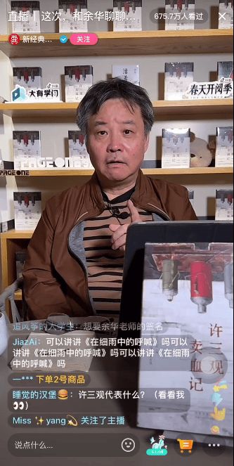 近日,在新版《许三观卖血记》上市之际,余华在抖音进行了一场特别的直播,和广大网友们一起聊“三观”。这是余华的首次单人直播——在全程没有其他嘉宾的情况下,余华用密集的金句输出给网友们带来了一场精彩的“脱口秀”。有人在评论中提问关于《许三观卖血记》的问题,也有人留下自己关于阅读和人生的困惑,余华都用他特有的幽默与通透一一解答,一边治愈着网友们的“精神内耗”,一边真诚地分享自己的文学故事。一个半小时的直播收获了超过600万人次观看,结束时大家纷纷留言“没听够”。