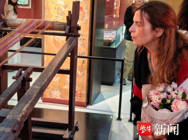此次南京之行中,云锦博物馆深深的吸引了爱丽丝的目光,她对博物馆展柜中精美的南京云锦特别是吉服赞叹不已,“这是我参观过的最棒的博物馆之一,我对中国古代文化很有兴趣。”在云锦博物馆的休息室中放着一副云锦《海屋朝鹤图》也吸引了爱丽丝的目光,翻译向她讲解了海屋朝鹤这个中国的神话故事,“这个图的颜色非常打动我,而且这种奇想感和空间感令我印象深刻。”爱丽丝的父亲曾在中国旅游,对中国文化兴味浓厚,还学习了一些中文,9日晚上他将飞抵南京故地重游,“我父亲年纪已经很大了,他说这可能就是他这辈子最后一次旅游了,要把这次机会留给中国。”