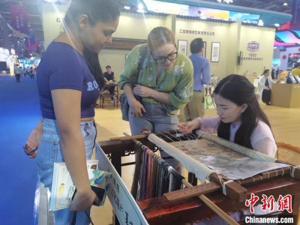 第二届江西文化产业博览交易会上,高雨翠在现场进行技艺展示,吸引了国外游客