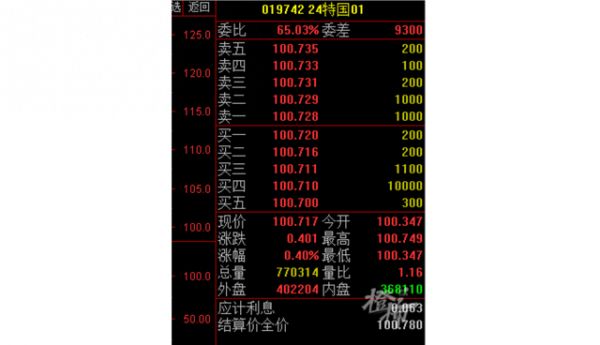 当天,上交所“24特国01”一度大涨25%,盘中两次临停,深交所“特国2401”也因盘中涨幅达20%被临停。5月23日,沪深交易所特别国债的市场价格都回落至面值附近随后逐步恢复常态。截至5月28日收盘,上交所“24特国01”报收100.717元,深交所“特国2401”报收100.7072元。而5月27日发售的20年超长期限国债也将于5月29日上市交易。