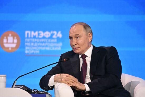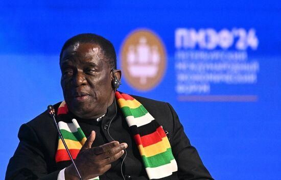 【环球网报道】综合塔斯社、《报纸报》等多家俄媒报道,俄罗斯总统普京7日出席圣彼得堡国际经济论坛全会,其间发表讲话并参与讨论俄罗斯与西方的关系等话题,津巴布韦总统姆南加古瓦也参加了论坛。此次论坛全会由来自俄罗斯高等经济学院世界经济与政治系的学者谢尔盖·卡拉加诺夫主持。