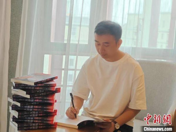 图为网络作家我本纯洁正在签名。受访者供图