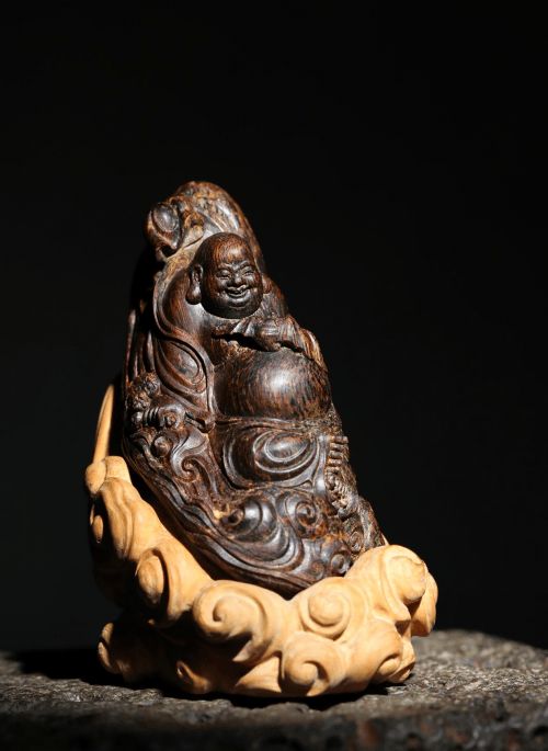沉香的结香方式有很多种,其中结黄油的很少见。淡黄色的基调,泛起缕缕金丝,其香味更是让人着迷。这件海南软丝黄油沉水包头-弥勒佛的奶香和花果香忽隐忽现,沁人心肺。特有的芳香,似轻纱起舞,叫人难舍。