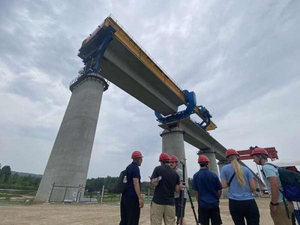 约瑟夫·弗克勒对桥梁充满兴趣,他在科罗拉多矿业大学学的是土木工程专业。当了解到这个项目的桥梁是通过大跨连续梁和预制梁共同筑建时,他表示,虽然美国也有类似的项目,但他从没见过这样的规模和工作人员数量。“你们用了两种方式让桥跨过路面和河流,施工效率非常高。”最让弗克勒念念不忘的还是远处将箱梁吊往桥面的“钢铁猛兽”,“我从没见过这么大的提梁机,想象都想不出来。”