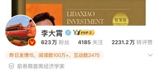 近期,英大证券首席经济学家李大霄正式退休,他的微博简介也已更新为“前券商首席经济学家”。