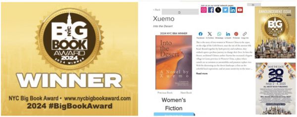 9月19日,美国纽约市大书奖组委会公布了2024年纽约市大书奖(NYC Big Book Award),由美国著名翻译家葛浩文(Howard Goldblatt)、林丽君(Sylvia Li-Chun Lin)翻译的中国作家雪漠小说《沙漠的女儿》(Into the Desert)获得“女性小说类”金奖,由陈李凡平翻译的雪漠小说《西夏咒》(Curses of the Kingdom of Xixia)获“世界文学类”金奖。本届纽约市大书奖参评者来自全球20多个不同国家,见证了全球高质量的作品。而在今年6月,《沙漠的女儿》还获得美国2024年独立出版奖(Independent Press Award)“文学小说类”金奖,并于2022年荣获中国外文局优秀翻译奖。