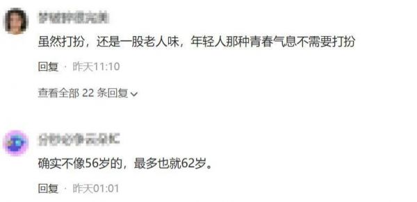 不过有人夸,也有人损,评论区有人说:“虽然打扮,还是一股老人味,年轻人那种青春气息不需要打扮……”