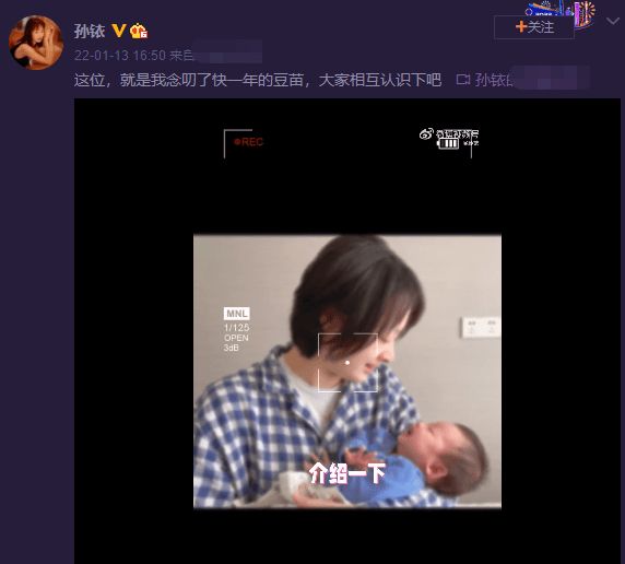 据悉,2022年1月13日,孙铱晒视频宣布了生子喜讯。