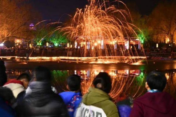 栾城区古栾水镇,非遗打铁花表演精彩上演,呈现出璀璨夺目的美妙场景,引来众多游客驻足观看,获得阵阵喝彩声。井陉县天长宋古城里,大街小巷张灯结彩,处处弥漫着浓浓的节日氛围。夜幕降临,狮子火、打铁花等非遗焰火表演相继上演,让古城的夜晚更加热闹喜庆。
