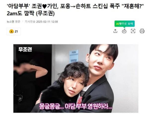 大家好,这里是你们的小娱~今天要给大家带来一个超甜的消息!据韩国媒体2月11日报道,曾经的“亚当夫妇”赵权和孙佳仁又合体了!两人在2AM演唱会的后台互动甜到齁,连2AM成员都忍不住调侃:“这是要再婚吗?”快跟小娱一起来看看这段让人心动的重逢吧!