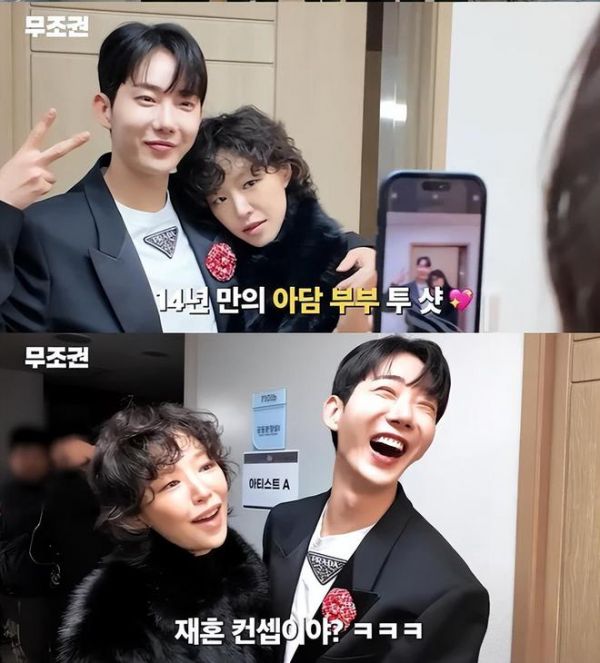 作为曾经在MBC综艺《我们结婚了》中扮演假想夫妻的两人,一见面就展现了熟悉的打打闹闹模式。佳仁看到赵权穿着印有显眼名牌标志的T恤后,直接吐槽:“穿了贵的衣服。感觉像是买了T恤然后直接贴了个标志。”赵权也不甘示弱,开玩笑回怼:“你像个30年资历的造型师。”,这种熟悉的互怼模式,瞬间让粉丝们梦回“亚当夫妇”时期,纷纷表示:“还是那个味儿!”