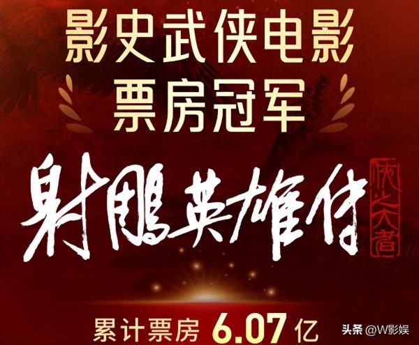 好消息传来,随着票房的增加,武侠类别的电影票房冠军也出来了,它就是来自徐克导演的电影《射雕之侠之大者》。这部徐克执导,肖战和庄达菲主演的电影在上映只是10天的时间内就拿到了6.07亿的票房,稳稳地坐稳了咱家武侠电影票房冠军的金交椅。
