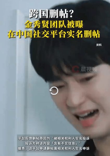 同日,有中国网友发帖称,自己此前发布的金秀贤相关帖子疑被金秀贤方删除。平台反馈删帖原因为“被相关权利人实名投诉,投诉方称该内容「含有不实信息」”。据悉,该平台申请删帖需相关权利人实名申诉。