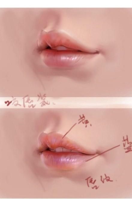 8、整个嘴唇中间实、强对比, 两侧虚、弱对比, 并且嘴角周围的小灰面能使嘴角更柔和。