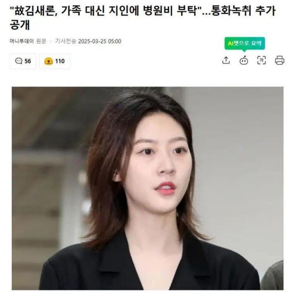 昨晚,记者出身的YouTuber李镇浩公开了一段金赛纶生前的通话录音,内容让人揪心。录音中,金赛纶向朋友求助:“我的韧带和肌腱都断了,需要手术,但保险不报销,大概要500万韩元(约合人民币2.7万)……”