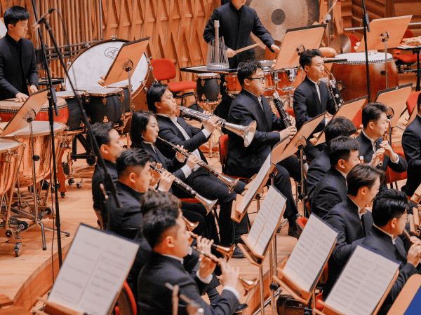 音乐会当晚,捷豹上海交响音乐厅内灯火通明。随着彭家鹏舞动指挥棒,音乐会以唢呐协奏曲《大开门》拉开序幕。中国首个唢呐博士刘雯雯以极具张力的演奏技巧,将传统戏曲元素与现代创作技法完美呈现,唢呐声与乐团丰富的演奏层次交织,瞬间点燃全场。