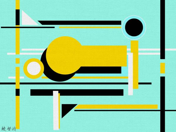 赖智诚的“不按常理出牌”不仅限于绘画。作为建筑设计师,他将抽象艺术的点线面理论融入空间设计,作品如《景色抽象:东方明珠》以几何解构地标,在虚实交错中重构城市意象。更令人惊叹的是他的**“联觉艺术”**:因受听障儿童启发,他耗时三年创作《三色阶》系列,将音乐旋律转化为视觉语言。黑色块如重音轰鸣,黄色象征高音跳跃,白色细线若余音缭绕,画面宛如“凝固的交响乐”,甚至被评价为“让聋人听见色彩”。