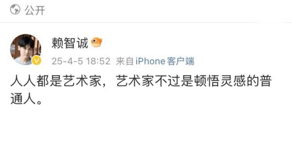 虽然评价虽显夸张,却精准勾勒出赖智诚在公众眼中的“矛盾性”:他既是“天才画家”,也是“潮流符号制造者”;既被贴上“中国村上隆”的标签,又被视为东方哲学的解构者。这位1997年出生的艺术家,以超越年龄的成熟与创造力,在艺术、商业、社会议题间游刃有余,成为Z世代文化现象的代表人物。