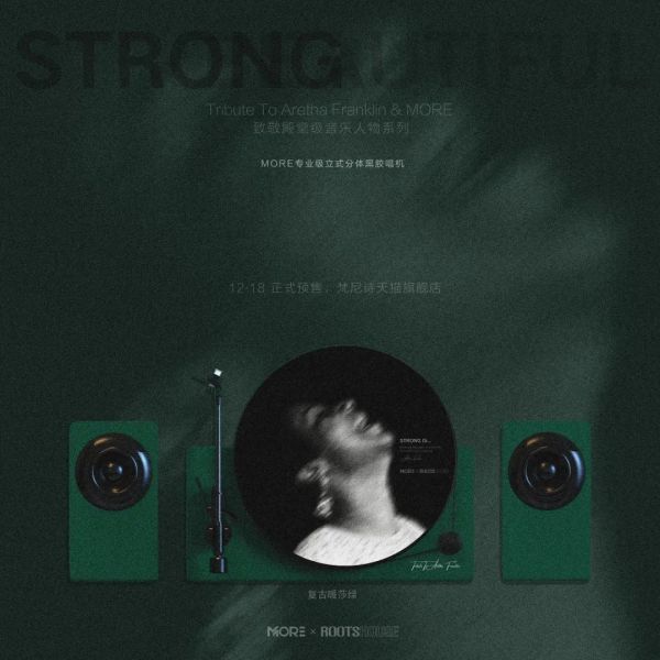 MORE联合ROOTSHOUSE设计致敬Aretha Franklin系列MORE专业级立式分体黑胶唱机,期待大家通过黑胶专辑重返Aretha Franklin经典现场,在黑胶的旋转中享受Queen Of Soul的音乐魅力。