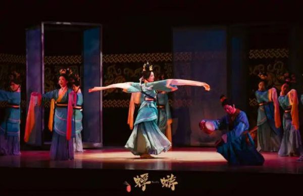 剧中的舞蹈段落同样令人称赞。第二幕的“盘鼓舞”与“蚩尤戏”两段群舞,充分吸收了中国古代祭祀舞与戏曲的表演程式,并融入现代编舞的节奏与造型语言。在强烈的鼓点与快速的身体调度中,舞者通过充满张力的肢体语言,生动呈现了仪式与表演相互交织、压迫与反抗激烈对抗的戏剧性冲突。而第三幕的“长袖舞”则以慢板形式,与优伶的合唱相融合,营造出深沉的舞台诗意。这一张一弛的节奏安排,使作品的整体叙事波澜起伏,富有韵律。