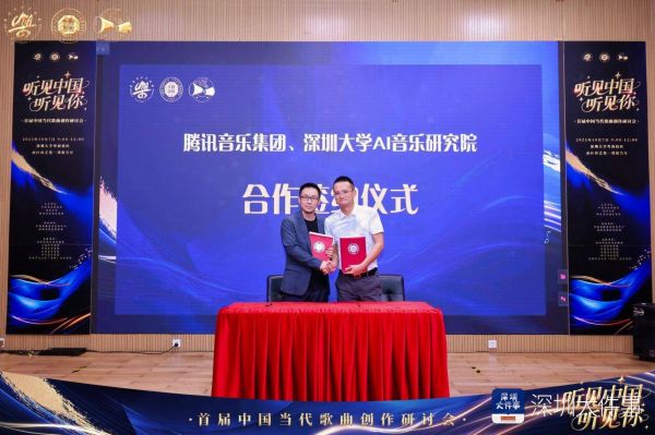 会上,腾讯音乐娱乐集团、深圳大学AI音乐研究院签署合作协议。
