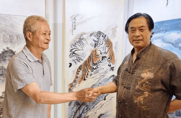 中美协理事、中央国家机关美协主席王阔海与画家陈兆生亲切交流