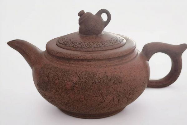 独特的泥料处理: 顾景舟对紫砂泥料有着超乎常人的理解与要求。他坚持亲自选矿、风化、粉碎、筛滤、陈腐,每一道工序都一丝不苟。经他处理的泥料,温润如玉,质感纯正,可塑性极佳,为其作品独特的“骨肉亭匀”之感奠定了物质基础。精湛的全手工成型: 他始终坚持并极致推崇“打身筒”和“镶身筒”的传统全手工成型技法。凭借一双巧手与一系列简单的工具,他能将一片片泥料拍打、镶接成各种严谨而富有生命力的几何形体。无论是圆器的“圆、稳、匀、正”,还是方器的“挺括周正”,都达到了无可挑剔的境地。他的线条干净利落,轮廓清晰流畅,仿佛由内在的气韵自然生成,毫无匠气。深邃的造型美学: 顾景舟的壶造型,源于传统,却高于传统。他深入研究中国古代陶瓷器、青铜器、玉器的造型规律,并将其精髓融入紫砂创作。他的作品,如“提璧壶”、“景舟石瓢”、“雪华壶”等,无不体现出强烈的几何美学和现代设计感。在比例、尺度、线面转换上的把握,达到了多一分则肥,少一分则瘦的完美平衡,具有永恒的经典性。刻划与陶艺的融合: 顾景舟虽以光素器(圆器和方器)闻名天下,但其与书画名家(如吴湖帆等)的合作佳话,亦成为艺坛美谈。他深刻理解紫砂壶是“陶”与“文”的结合体,壶身不仅是载体,更是画面的一部分。他亲自操刀的镌刻,刀法清健,布局得体,与壶体相得益彰,展现了其全面的艺术修养。三、 文化底蕴:器以载道的文人精神